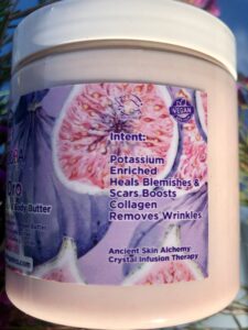 This is my absolute favorite Body Butter. Not just based on the benefits it produces but the smell. It’s incredible and can’t truly be described but think of a smoky cotton candy. It’s texture us like no other; it’s velvety yet very lightweight and highly absorbable. It’s A Smyrna Fig Delectable Experience.
